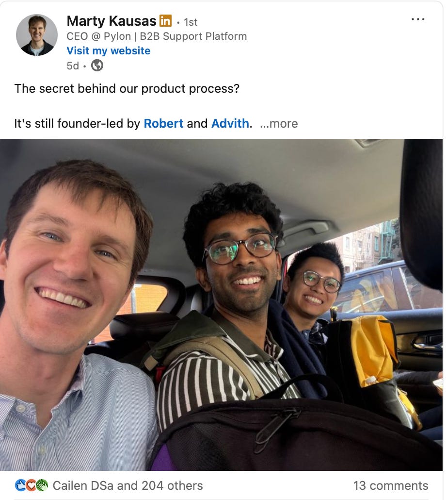 Marty turned his LinkedIn feed into a live GTM journal for Pylon.