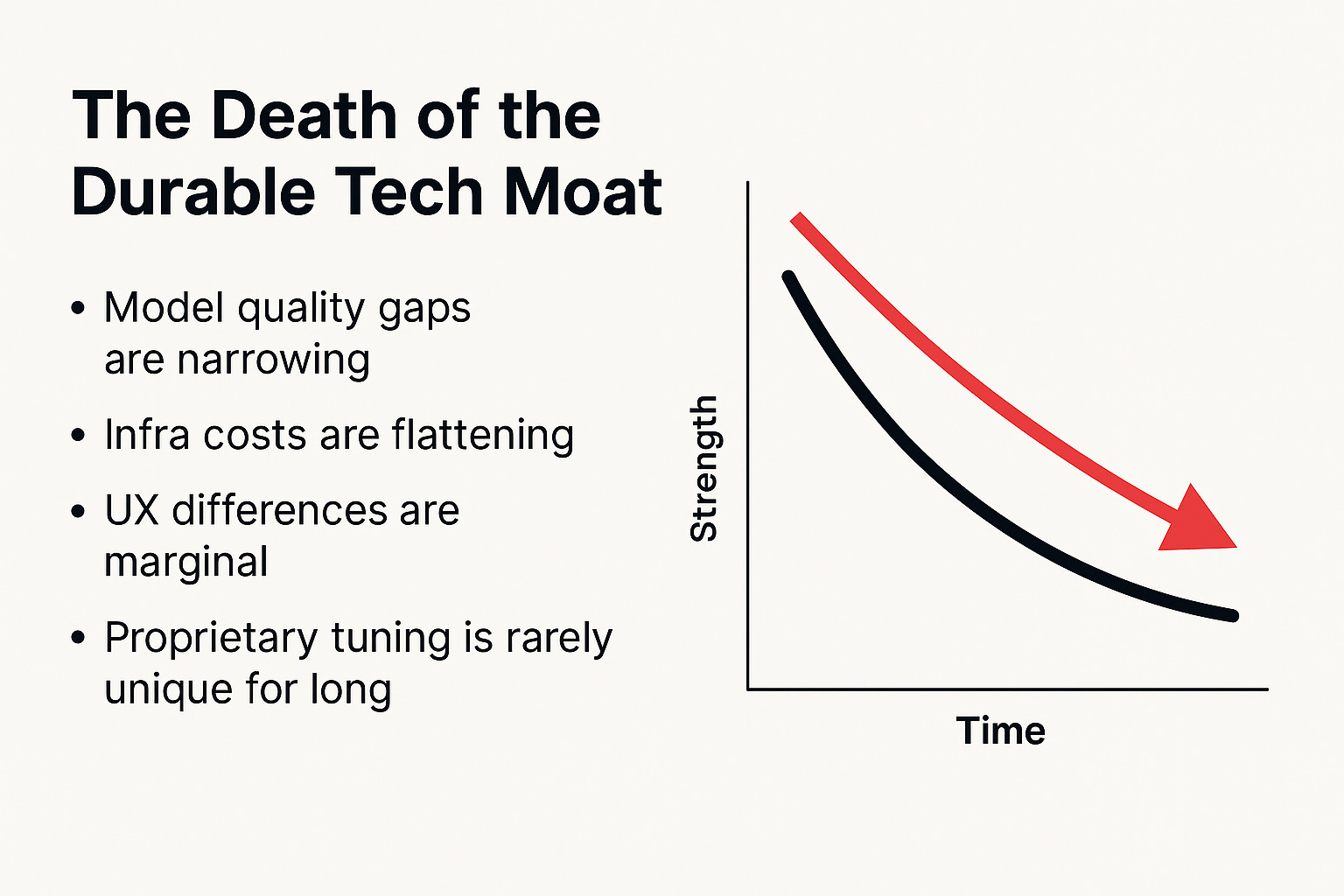 Your edge might last a few years. Even in competitive markets, your stack, features, and integrations formed a moat.