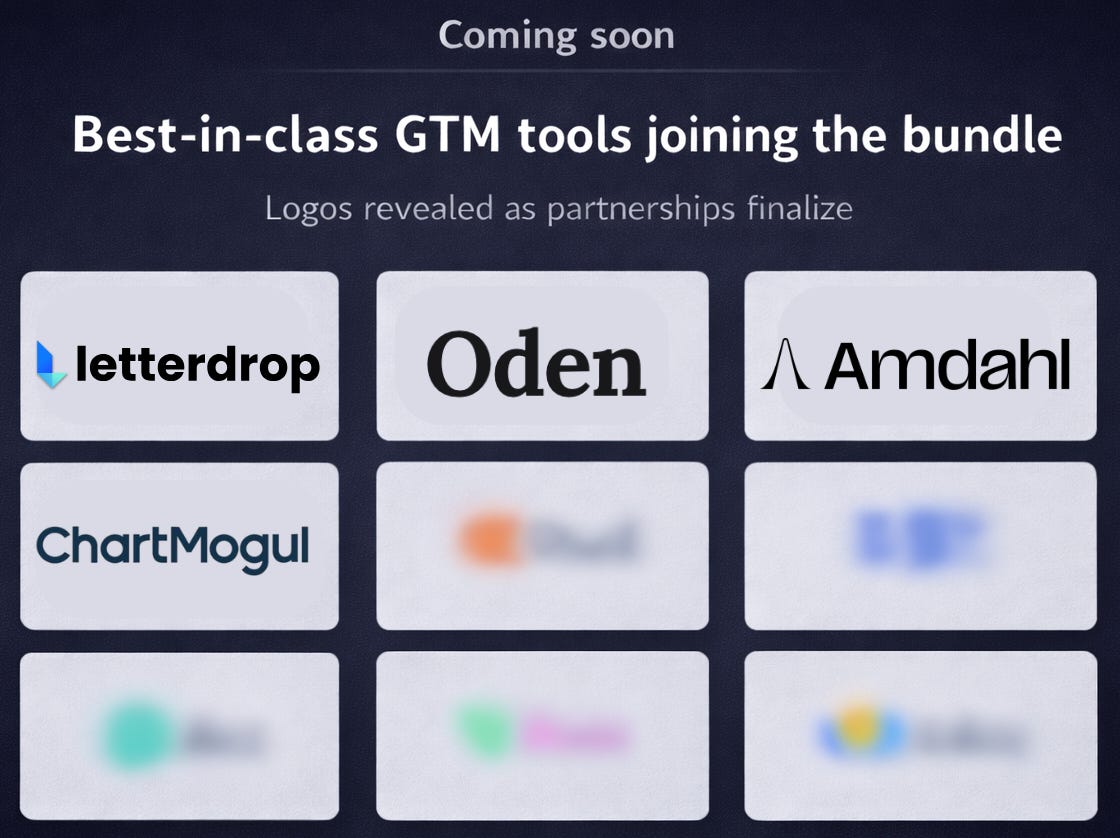 The GTM Vault Operator Perks Bundle gives founders and revenue leaders free access to best-in-class GTM software - tools we actually use, test, and recommend inside GTM Vault.