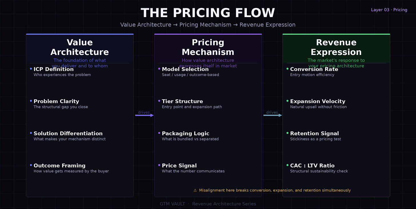 Pricing is not a revenue lever adjusted in response to competitive pressure. It is the mechanism through which your value architecture expresses itself in the market.
