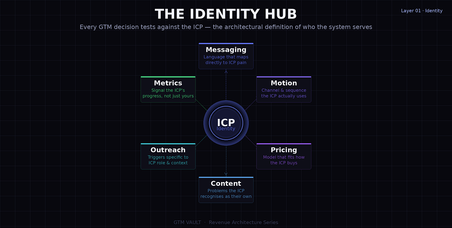 Every GTM decision tests against the ICP. Not as a targeting filter applied to a list. As the architectural definition of who the system is built to serve.