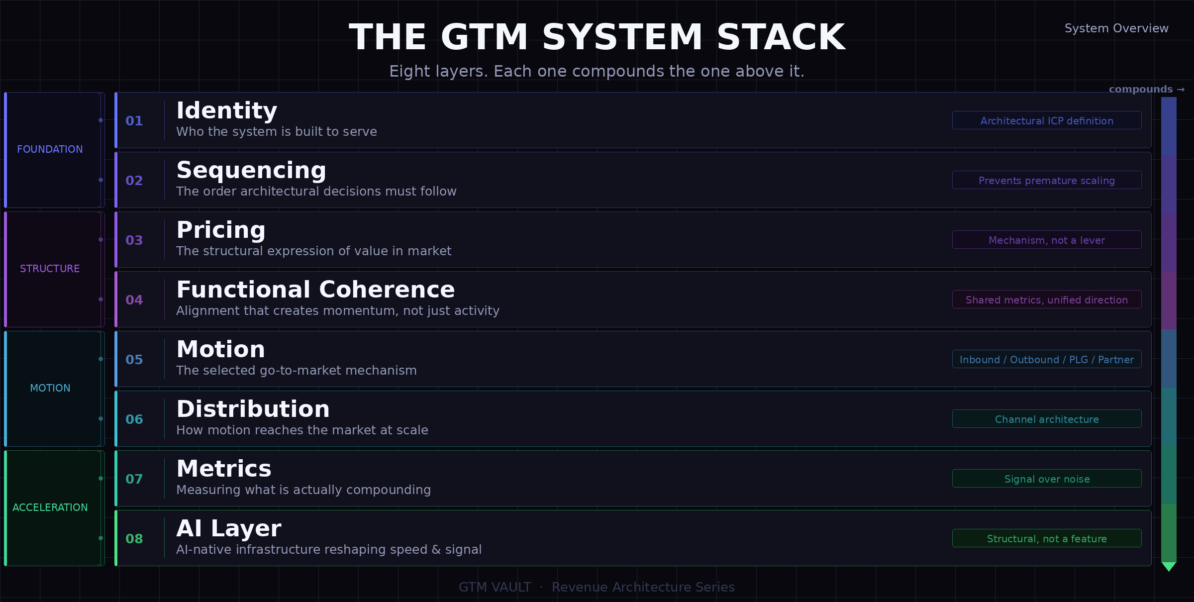 A visual guide to the structural layers that determine whether go-to-market compounds or collapses.